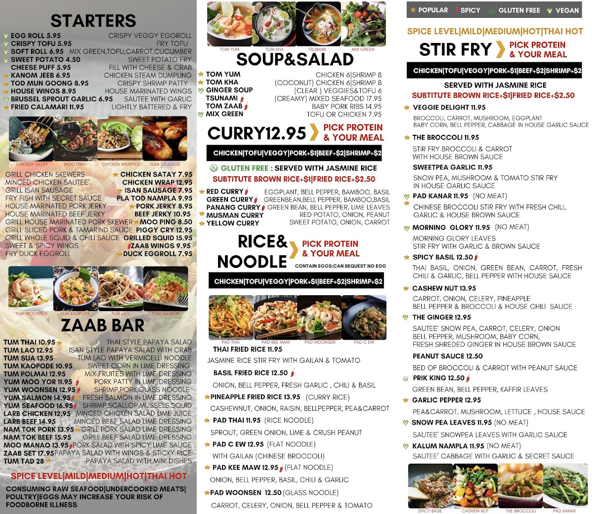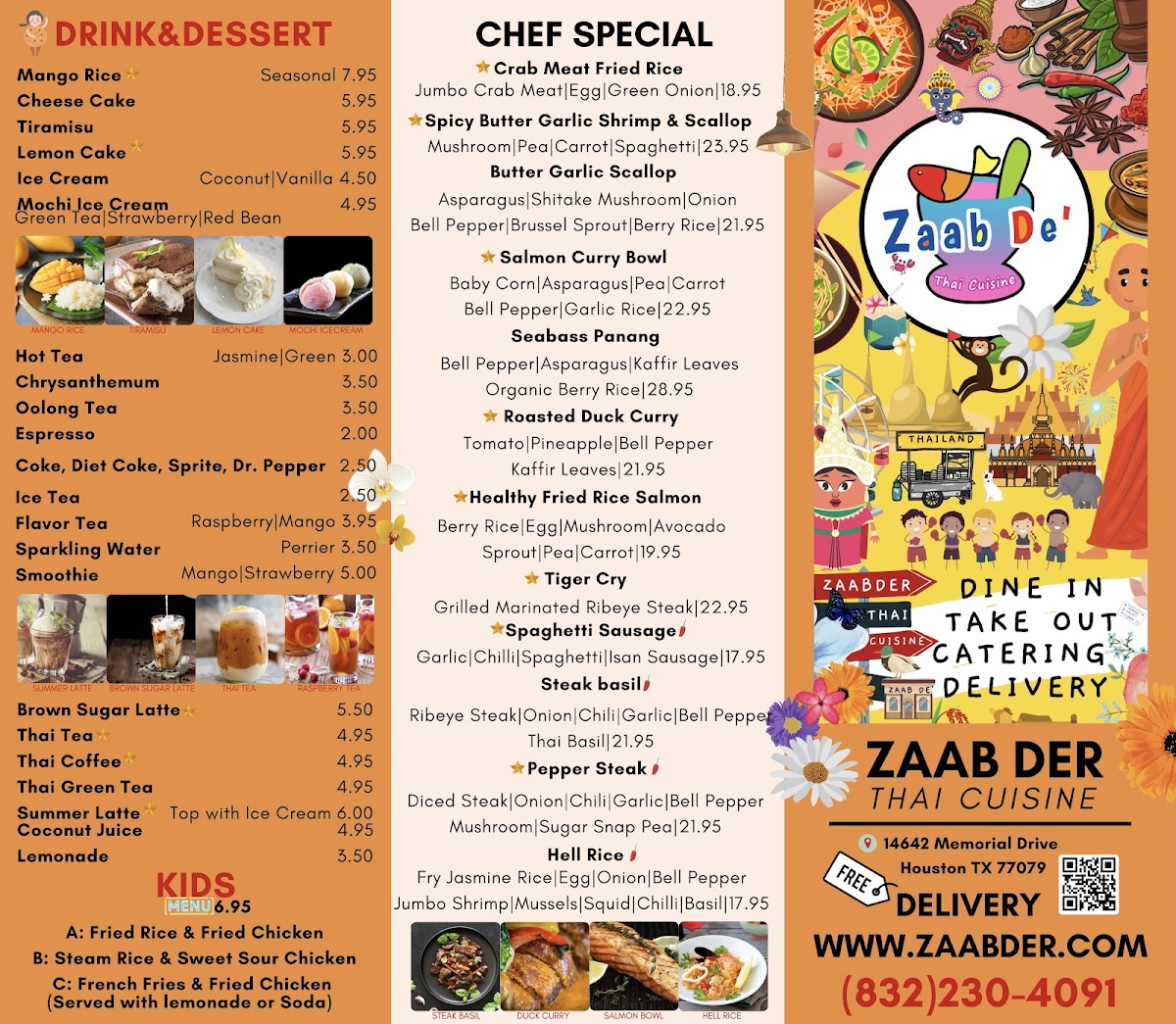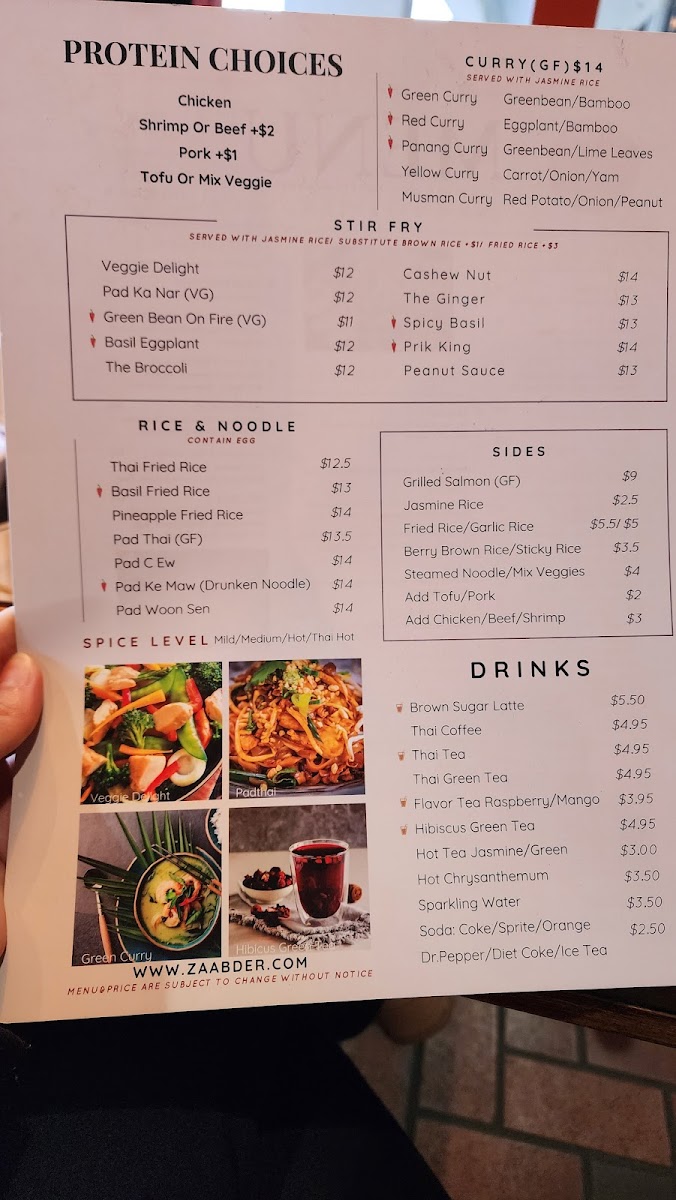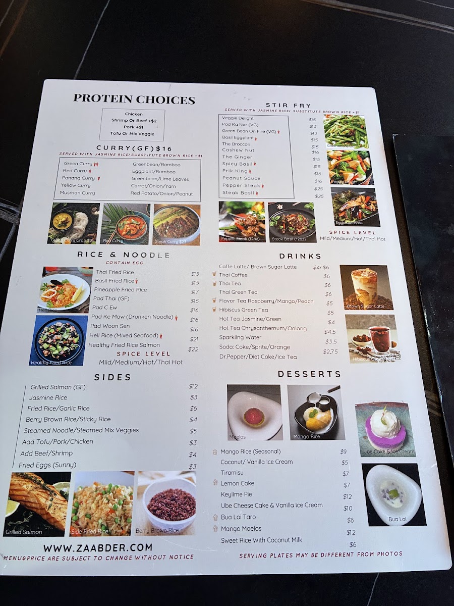 At Zaab Der, you’re in for an unforgettable dining experience filled with bold flavors and unique dishes that will transport your taste buds straight to Thailand. The Zaab Der Menu showcases a variety of mouthwatering options, from traditional favorites to exciting new creations, all crafted with the freshest ingredients. Whether you're in the mood for a spicy curry, a refreshing salad, or a comforting bowl of noodles, you’ll find something to love here. The menu balances rich, savory flavors with vibrant herbs and spices, making each dish an adventure. For those who enjoy a bit of heat, the chili-packed offerings are sure to delight, while milder options are perfect for those who prefer a more subtle taste. The atmosphere at Zaab Der is just as inviting as the food, making it a great spot for both casual meals and special occasions.